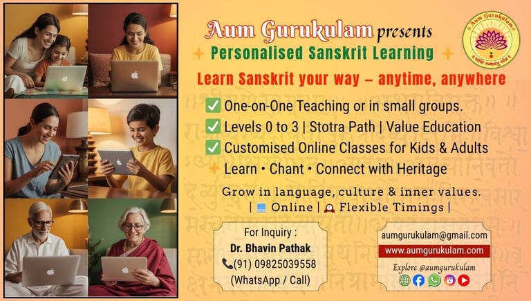 At Aum Gurukulam, we offer customised Sanskrit classes for kids and adults.